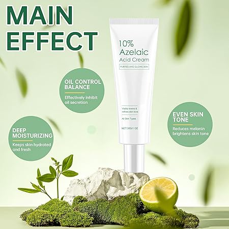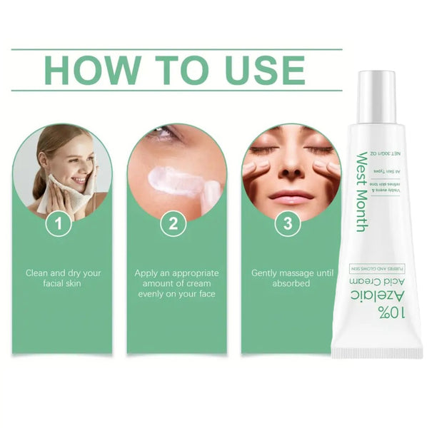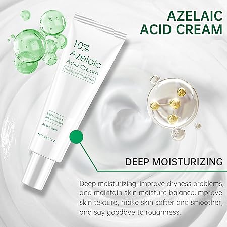This 10% Azelaic Acid Cream targets multiple skin issues by helping to unclog pores, calm inflammation, and enhance overall skin tone. It is especially effective for those dealing with acne and uneven, lackluster skin.