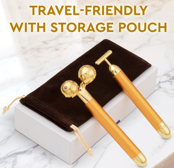 Harness the power of micro-vibration technology with this dual-design facial massager set featuring both T and Y-shaped bars infused with 24k gold. These precision tools stimulate circulation, minimize facial puffiness, and optimize your skincare product penetration for visibly revitalized skin. Engineered as a sophisticated addition to your daily regimen, they work synergistically with your existing skincare to amplify results while maintaining professional-grade efficacy in an at-home format.