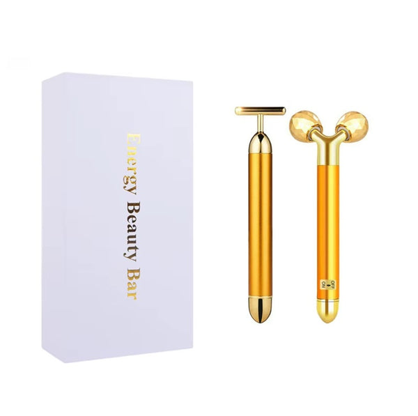 Elevate your skincare routine with the 24K Energy Beauty Bar. Featuring a 24K gold-plated, T-shaped head and Y-shaped head, this handheld device delivers 6,000 vibrations per minute to gently massage facial muscles, improve circulation, and enhance product absorption. In just 2–3 minutes daily, you can achieve firmer, tighter, and more radiant skin. Waterproof and portable, it’s perfect for use at home or on the go. Designed for the face, neck, and décolleté, this beauty tool helps reduce wrinkles and rejuvenate your complexion, especially when paired with serums for optimal results.