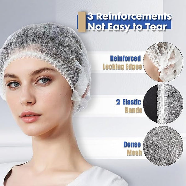 Commonly used in laboratories, factories, kitchens, aesthetic salons, hospitals, food & pharmaceutical manufacturing plants for hygiene protection & prevention against hair fall during product preparation. Also commonly used in aesthetics and medical industry to ensure the hair is kept out of the face (treatment area).