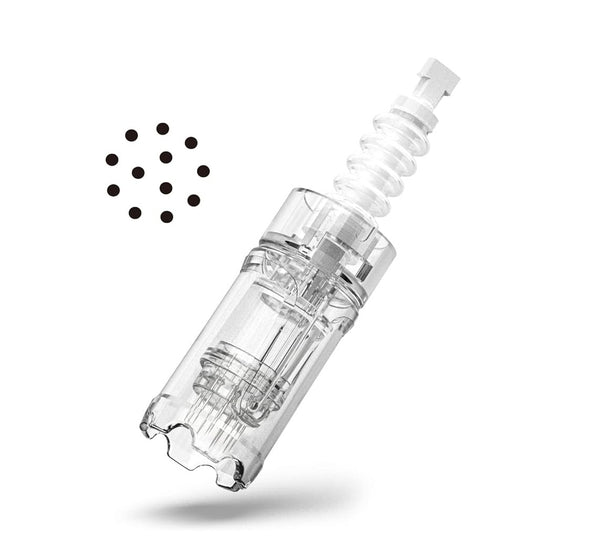 12 & 24 Pin – These cartridges are designed to enhance the treatment of acne scars, wrinkles, fine lines, melasma, rosacea, hyperpigmentation, and stimulate collagen production. Users may choose to apply a numbing cream on cleansed, prepared skin depending on treatment depth, their expertise, and whether the procedure is performed professionally or at home.