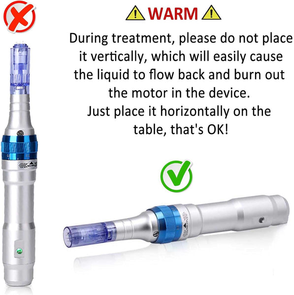 The derma pen should be held securely and allowed to glide over the skin without exerting excessive pressure, and without hastily gliding over the skin.