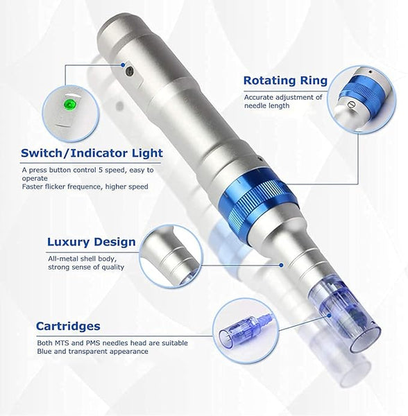 Dr. Pen Ultima A6 Silver - Wireless Derma Pen (battery operated & corded device with 12 x 12pin needles)