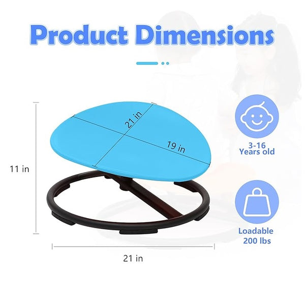 Firm and Comfortable Design: The metal base of this sensory seat added with a rubber anti-skid pad, which ensures the stability of the children's rotary chair and makes children play more confidently. The rounded and thickened edge is convenient to grasp, don't worry about children being injured during use. This chair can bear weigh up to 220 ib.