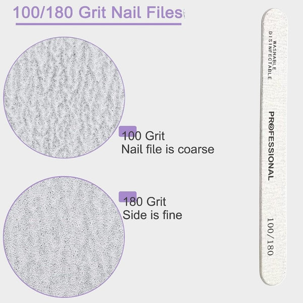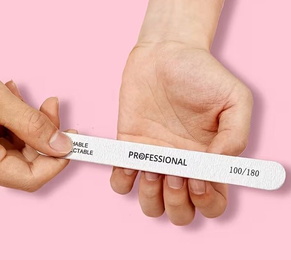 A 100/180 grit nail file is a dual-sided tool designed for professional manicures and pedicures. Each side serves a distinct purpose: